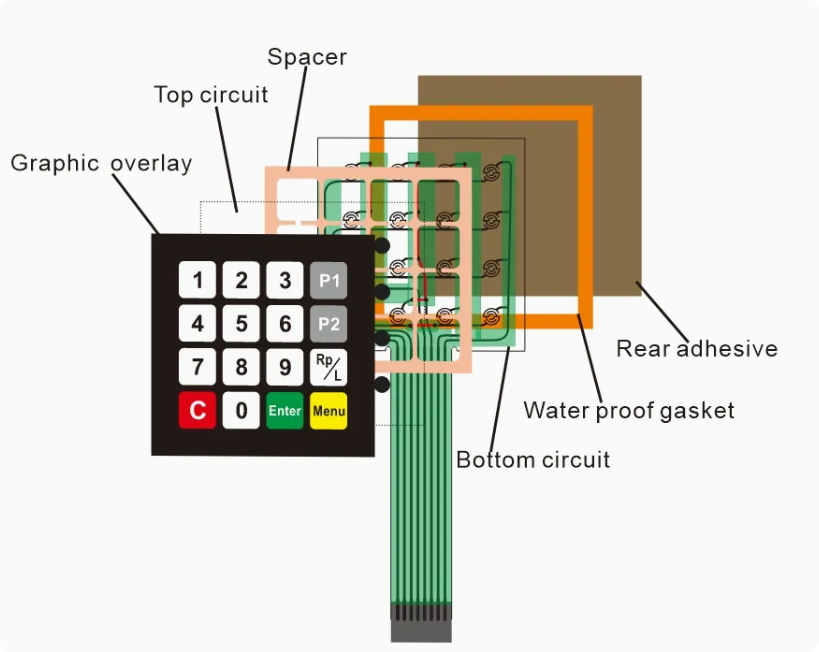 لوحة مفاتيح التبديل الغشائية، والتراكب الرسومي، ولوحة الاسم، ومستشعر الضغط، ولوحة مفاتيح السيليكون، ومنتجات السيليكون